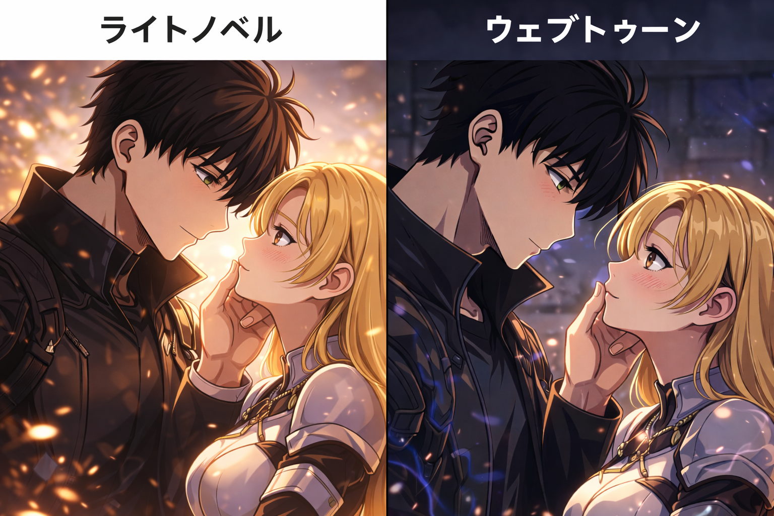 ノベルは内面の積み上げでじわじわ効く。ウェブトゥーンは表情・距離・構図で瞬間火力が出る。