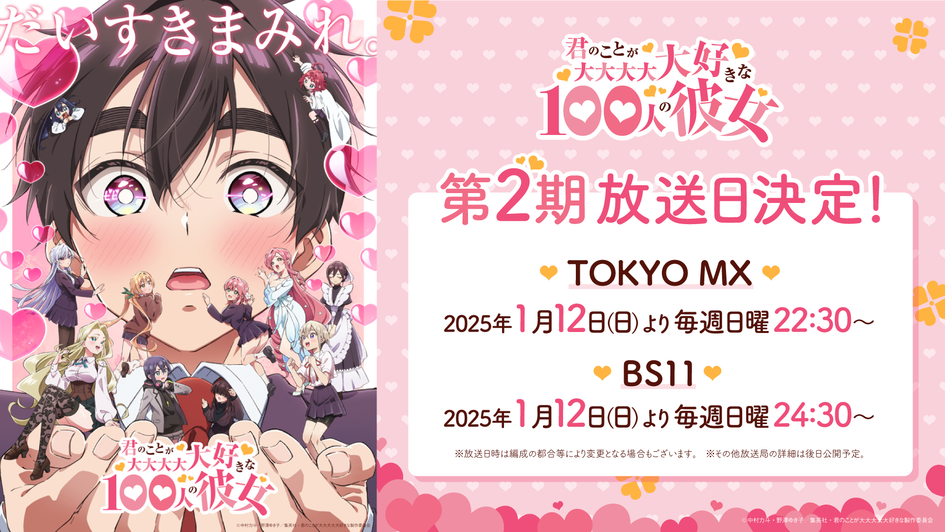 News | TVアニメ「君のことが大大大大大好きな100人の彼女」公式サイトTVアニメ「君のことが大大大大大好きな100人の彼女」公式サイト 原作:中村力斗・野澤ゆき子(集英社「週刊ヤングジャンプ」連載) キャスト:加藤 渉、本渡 楓、富田美憂ほか - 原作(ヤングジャンプ公式)