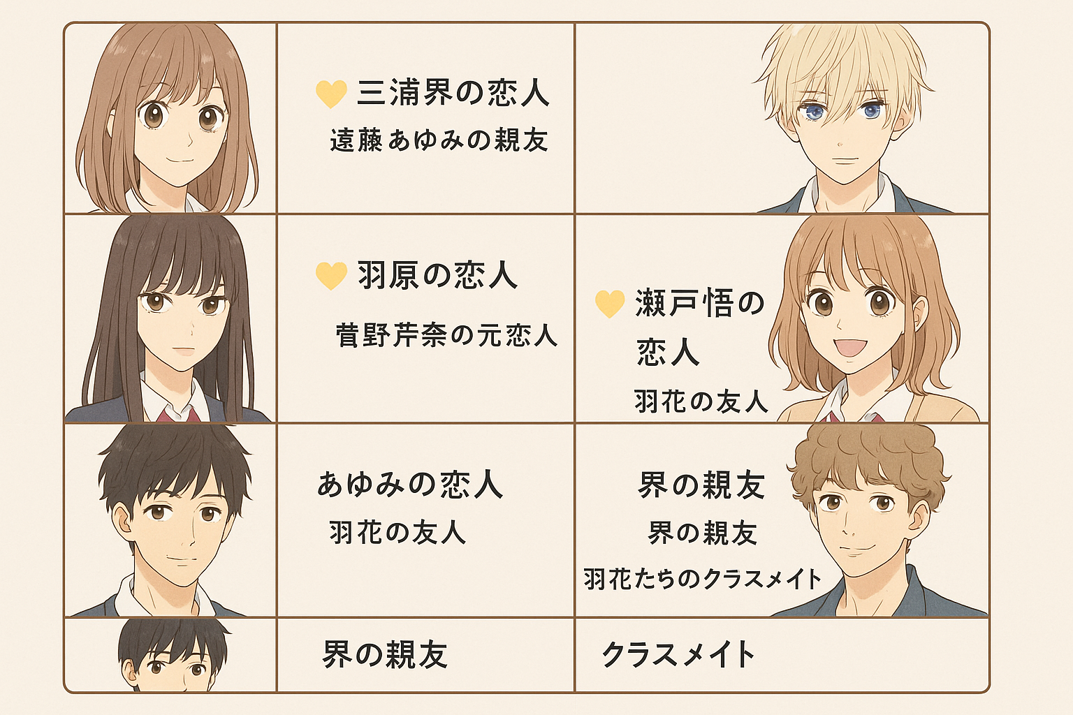 - 登場人物の恋愛・友情・過去をつなぐ相関図を解説