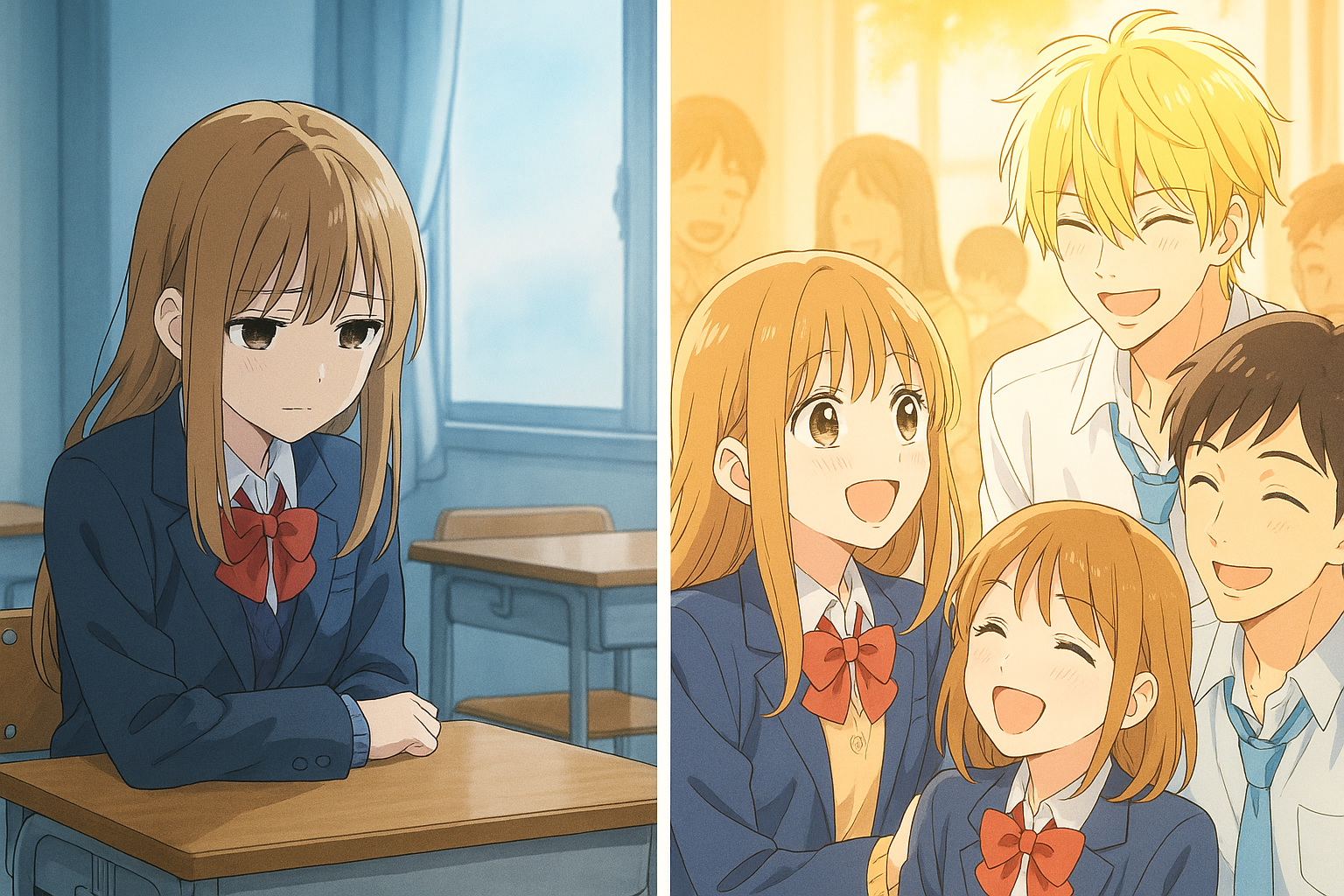 当時の羽花は、教室の空気に馴染めず、ただ嵐が過ぎるのを待っているような女の子。