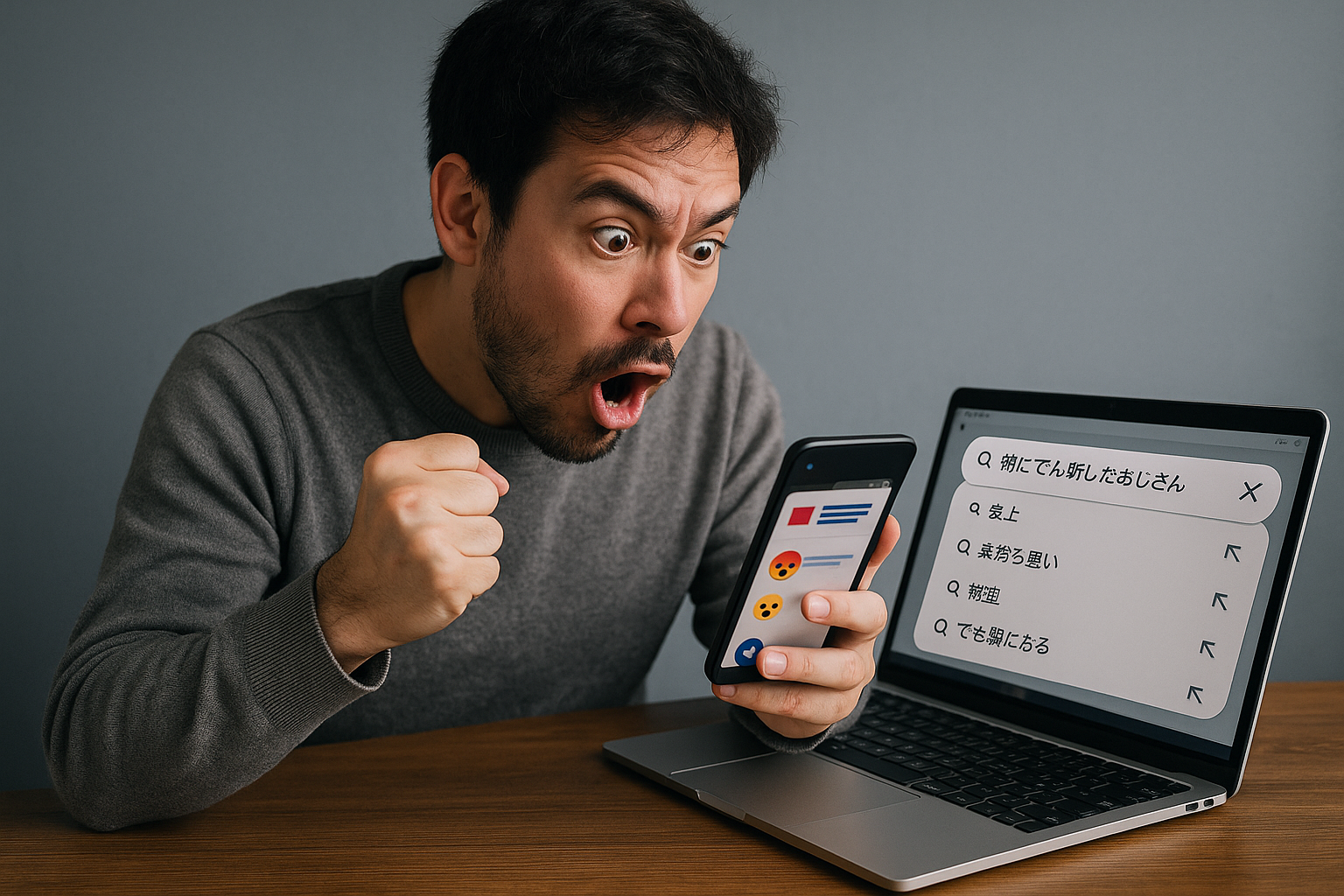 検索候補にいきなり「炎上」「気持ち悪い」「無理」「でも癖になる」がずらっと並ぶんですよね。