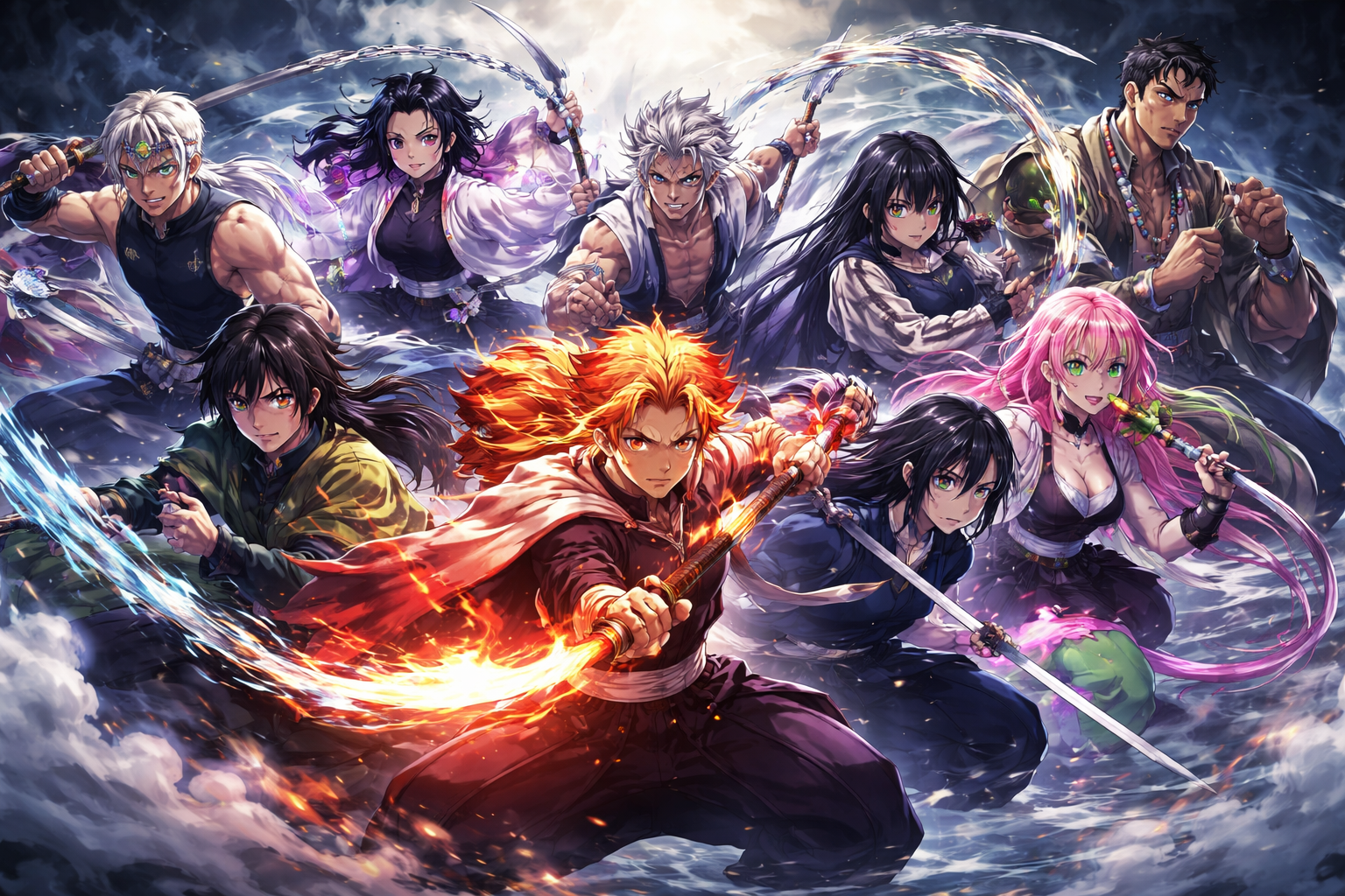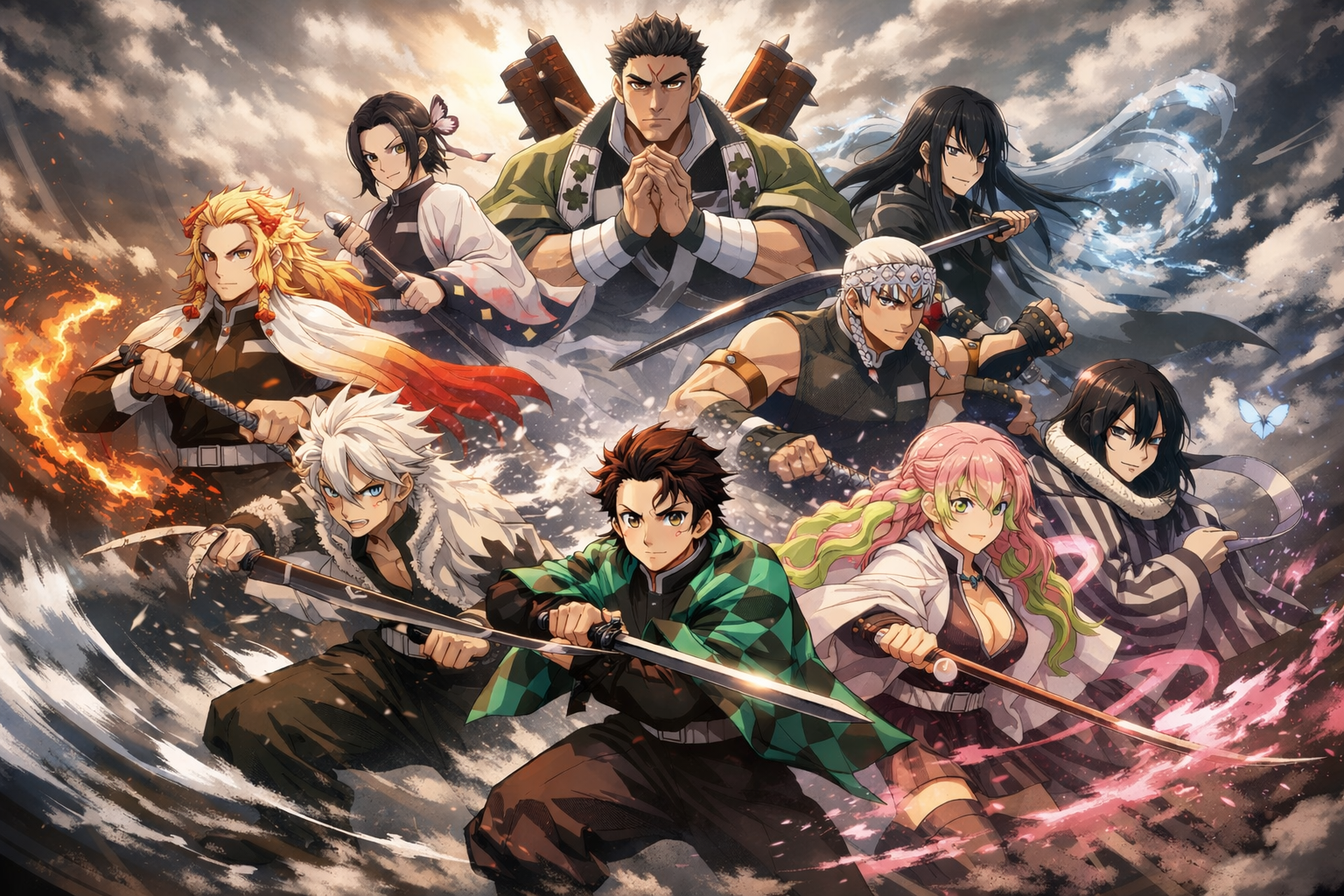 「柱」って聞くと、つい“最強の9人”って言いたくなる。…うん、分かる。僕も初めてアニメで柱が揃ったシーンを観たとき、普通に声出ました(笑)