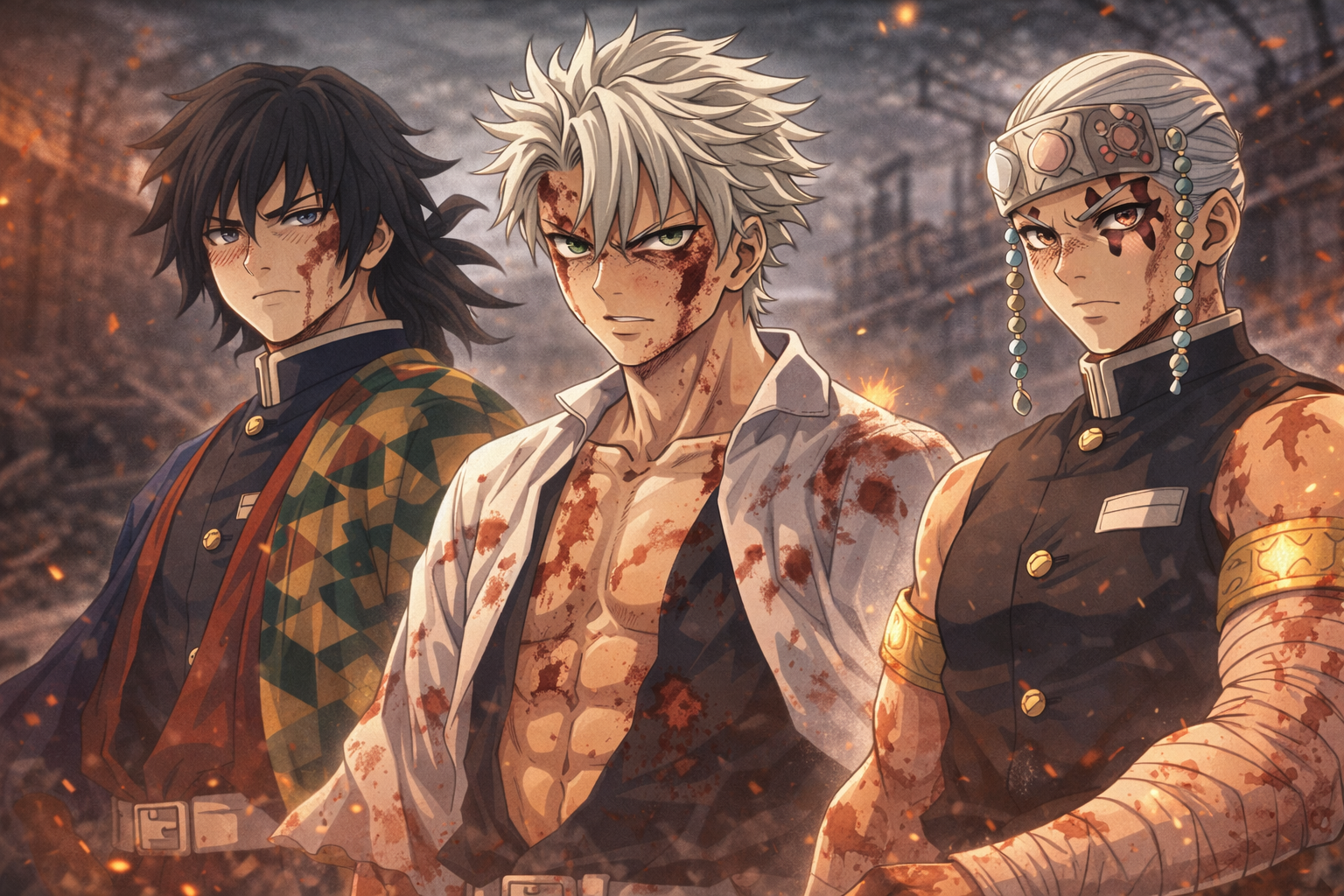 冨岡義勇(水柱) / 不死川実弥(風柱) / 宇髄天元(音柱)です。