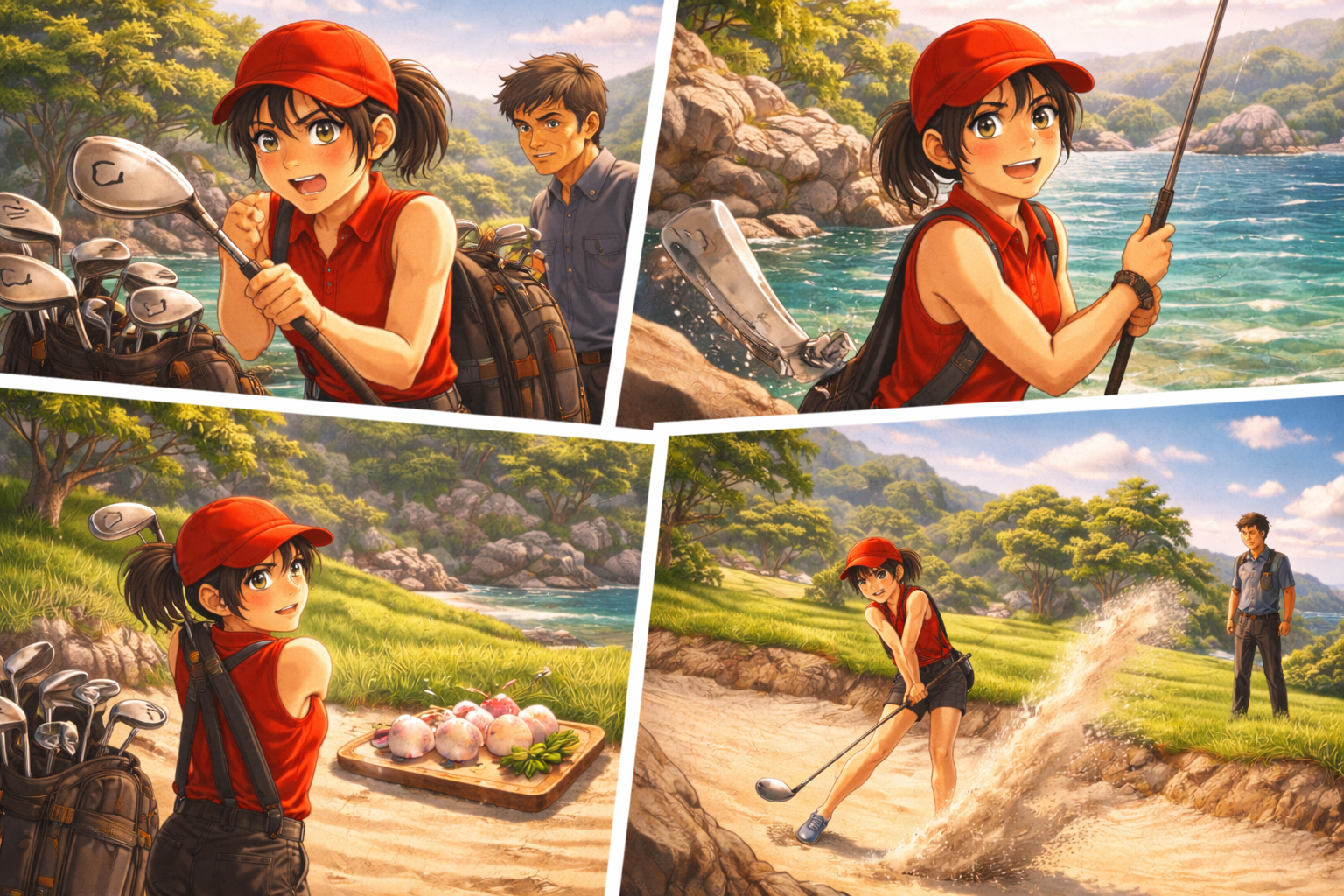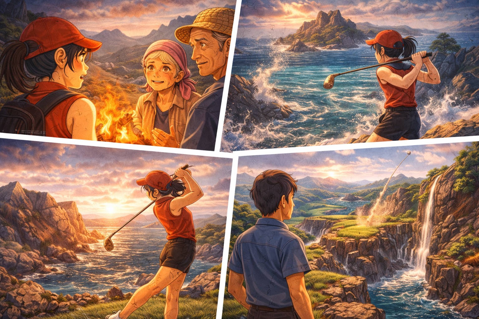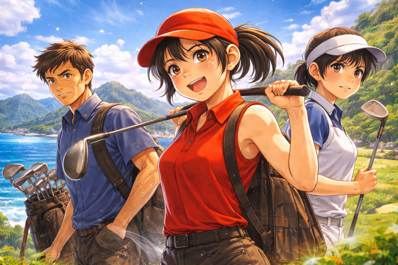 - 大井とんぼ:火之島で育った少女。相棒は3鉄(3番アイアン)一本。
