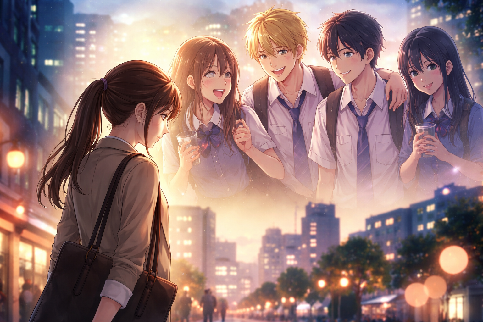 落ち込みながら街を歩く水帆が、通りすがりの楽しそうな高校生たちを見た瞬間——「あ、私にもあんな時間があったんだ」と、記憶が10年前に巻き戻っていく。