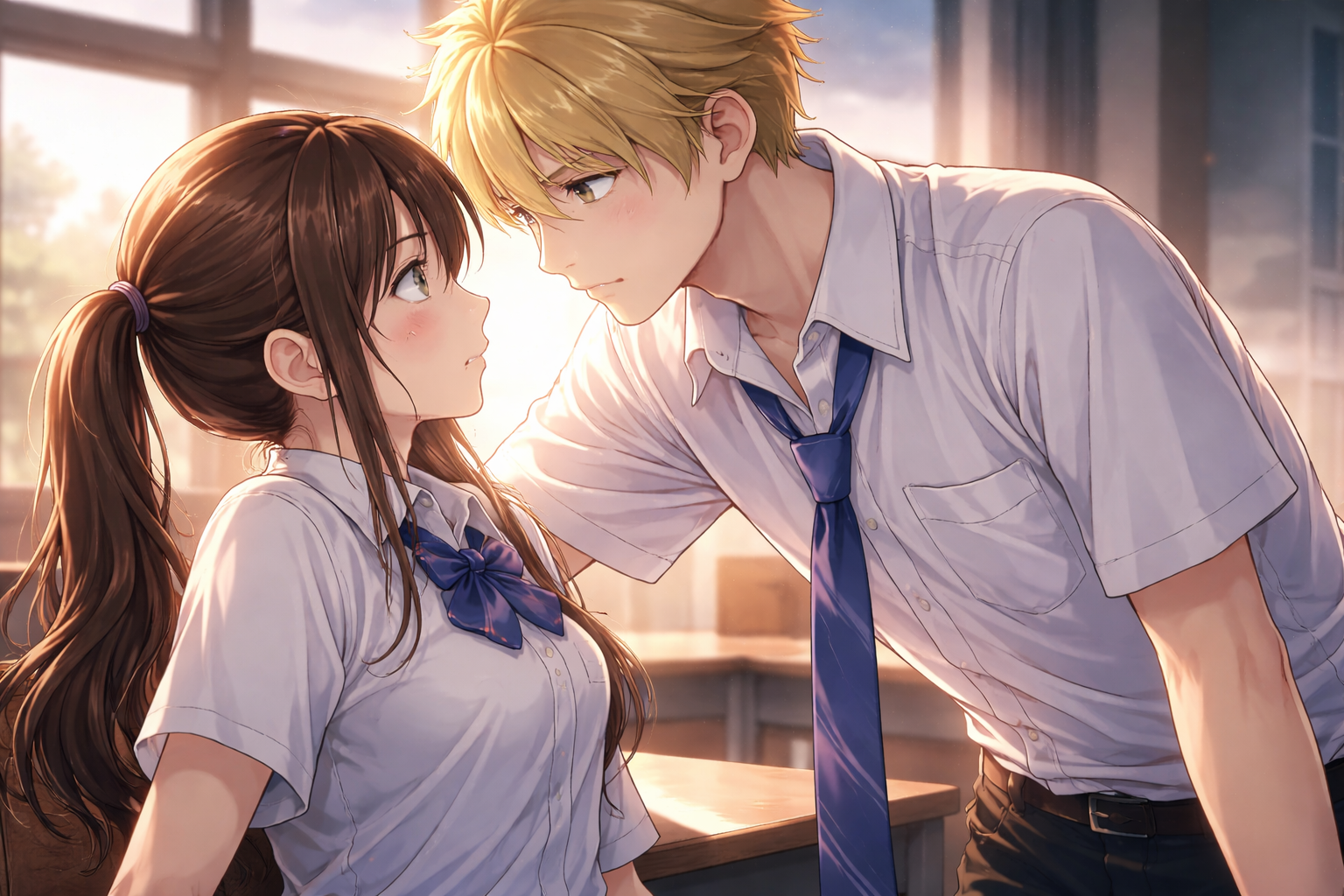 放課後の教室で、水帆と輝月が“寄り添う距離”に入っちゃう。で、水帆は水帆で「これは恋の予感だ…」って薄々気づいてるのに、同時に「幼なじみの関係を壊したくない」が強すぎて、心の中で必死にブレーキ踏むんですよ。