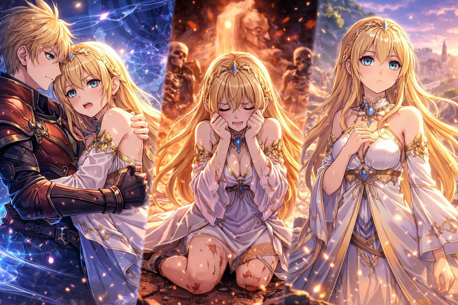 依存って、寄りかかってる相手が折れた瞬間に、自分も一緒に折れる。 だから勇者が敗北する(あるいは役割を終える)局面で、ノルンは心理的に「自分が否定された」みたいなショックを受けるはず。 ここで物語が上手いと、ただ泣かせない。“責任”を突きつける。神としての責任じゃなくて、感情で選んだことの責任。 僕はこの崩壊パートが一番好き。しんどいのに、目が離せない。だってここで初めて、ノルンが「神」じゃなくて“当事者”になるから。④ 再定義(自ら選ぶ)